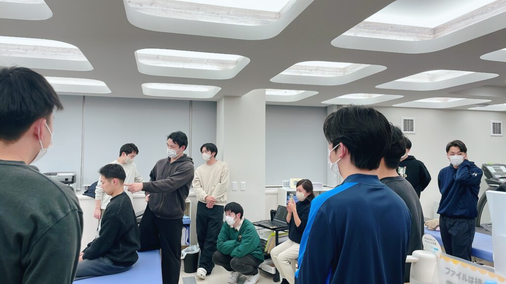 今回はこの度の症例への介入時に行った胸郭や体幹、頭頚部への実技が中心でした!頚部や肩甲骨周囲の疼痛はもちろん頚部周囲への介入も行いますが、頭頚部を支えている胸郭や体幹の影響も大きく受ける場合があります。その場合は頚部周囲のみの介入では効果が出づらく、体幹や胸郭と合わせて介入することが大切になります。