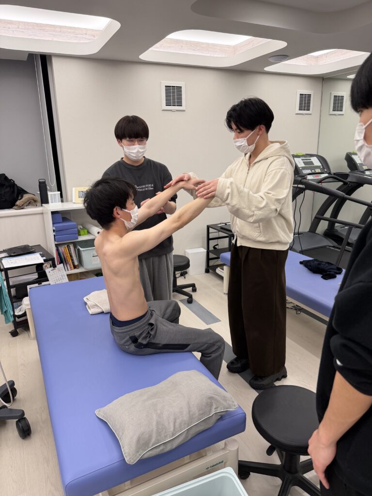 今回の勉強会では、超音波エコーを用いて肩の上がりにくさや、後ろに回しにくい状態を改善するための内容を中心に行いました!